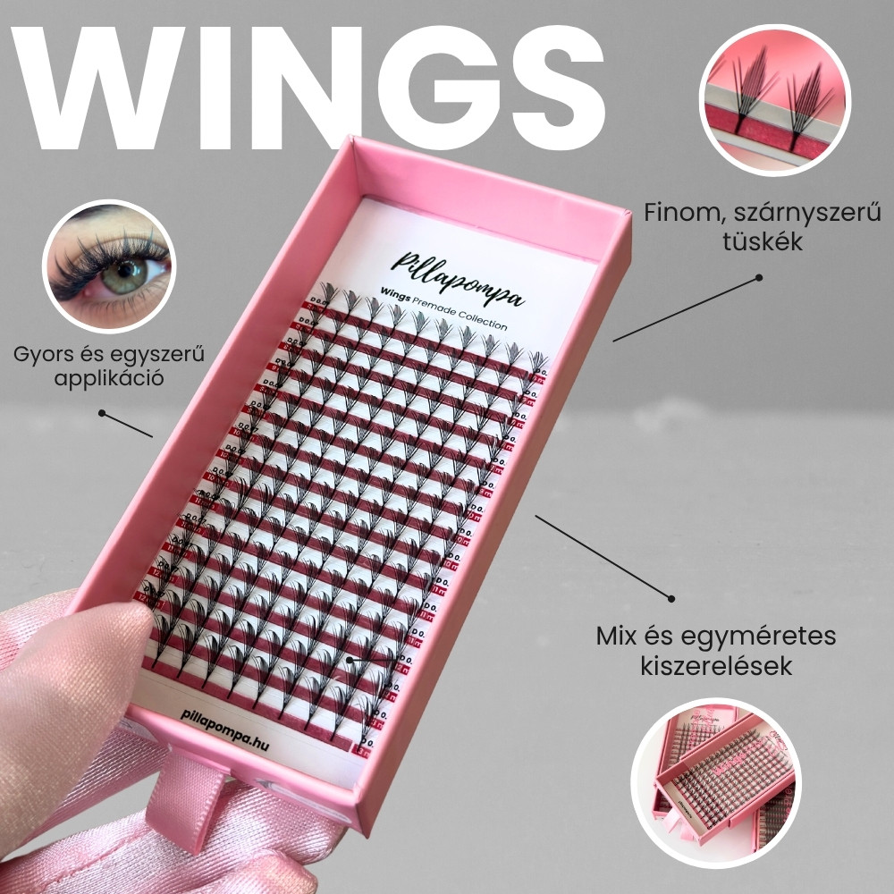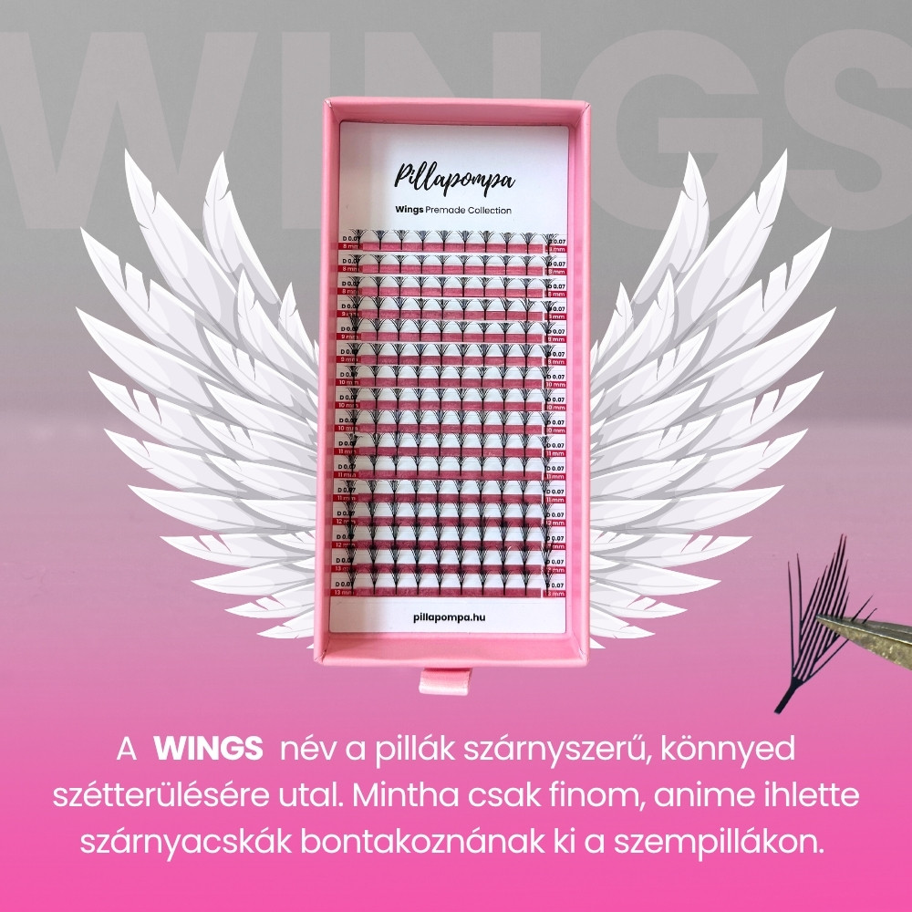 Ezek az Anime és Manga típusú premade pillák 2025 legforróbb szempilla trendjei közé tartoznak! A Wings kollekció finom, szárnyszerű tüskéi játékos, mégis elegáns megjelenést kölcsönöznek minden szettednek. Könnyű applikáció, lenyűgöző eredmény – vendégeid imádni fogják ezt az elegáns újdonságot!